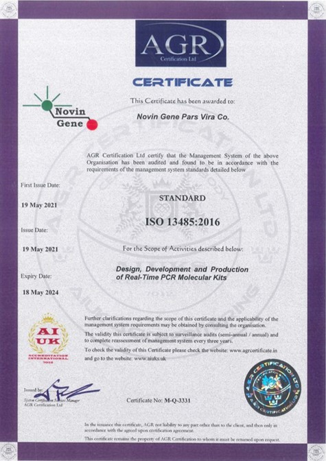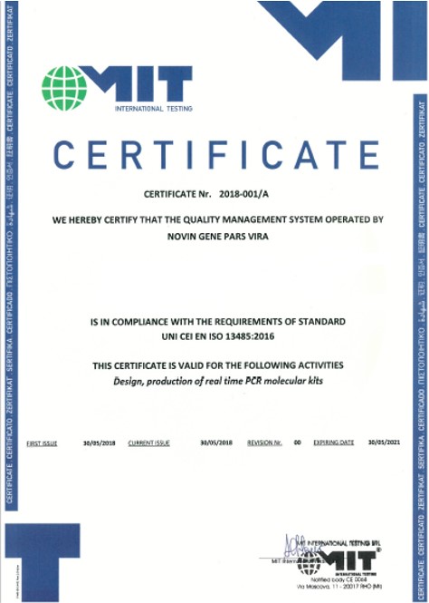 NovinGene Quality Management System received the certificate of ISO 13485:2016, which is special for the design, development and production of qPCR molecular kits.